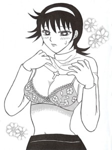 で、片づけをやってたら色々パンフレット出てきた。ワコールとかトリンプとかの(笑)。え~、この間「ミチルさんのお召し物の下に着けているものは、どんな色なんでしょうね?(迂遠な言い方)」ってな話をしてたのですが、思いっきり「あ、これ見て描いた!」というのがあって思いだした…………………水色。