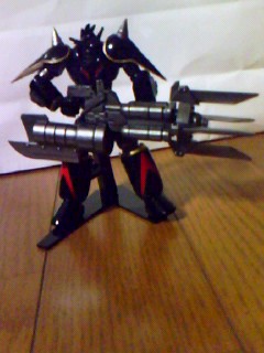 “リボルテック ゲッタードラゴン”ホビージャパン誌の限定ブラックヴァージョン。ゲッタードラゴン自体がOVAチェンゲのヤツでございます。で、ブラックverオリジナルで↑レーザーキャノンが付くんですけど…デカイ。保持できなくて重さで下がっちゃうんですけど…。手のひらに両面テープ貼ってみたよ!!でも多分長時間はムリなんだろう。
