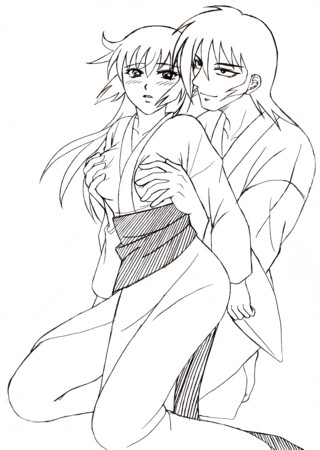 先日の絵のボツ構図。ゆかたで、中に手を差し入る…と