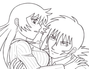 突発的状況で、急に接近“しなくちゃならない”の萌えるv隼人とミチルさんの体力差ならば、より素早く行動するためなら、えーい抱え上げちゃえ!と、効率がいい、という名のスキンシップ…(笑)。実利をとるなら、肩に荷物のように担いだ方が手が空くのですが、でも小説の描写読んでると、いわゆるお姫さまだっこ?それで2パターン描いてみました。だって楽しいんだもん…。体の向き、前からも後ろからもすれば良い(何だこの文章)。